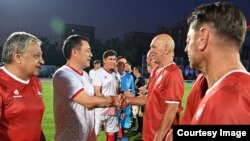Кыргызстандын футбол боюнча ардагерлердин курама командасынын катарында президент Садыр Жапаров, УКМКнын төрагасы Камчыбек Ташиев жана маданият, маалымат, спорт жана жаштар саясаты министри Азамат Жаманкулов дагы бар.